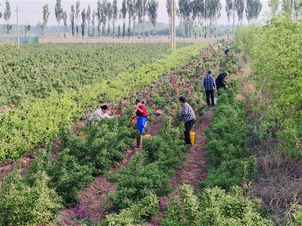 “我們瞄準(zhǔn)藥食同源食用玫瑰,全力打造食用玫瑰生產(chǎn)、加工、銷售全產(chǎn)業(yè)鏈。目前,公司發(fā)展大豆玫瑰間作、紅棗林下經(jīng)濟(jì)玫瑰種植1000余畝,成熟后公司將以保底價(jià)每公斤鮮花6元回收,可有效帶動(dòng)2000余戶農(nóng)戶實(shí)現(xiàn)增收?!鄙轿骶搛无r(nóng)業(yè)科技開發(fā)有限公司技術(shù)總監(jiān)郭秋有介紹說。