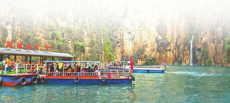 游客在八泉峽景區(qū)乘船觀光。孫兵兵攝