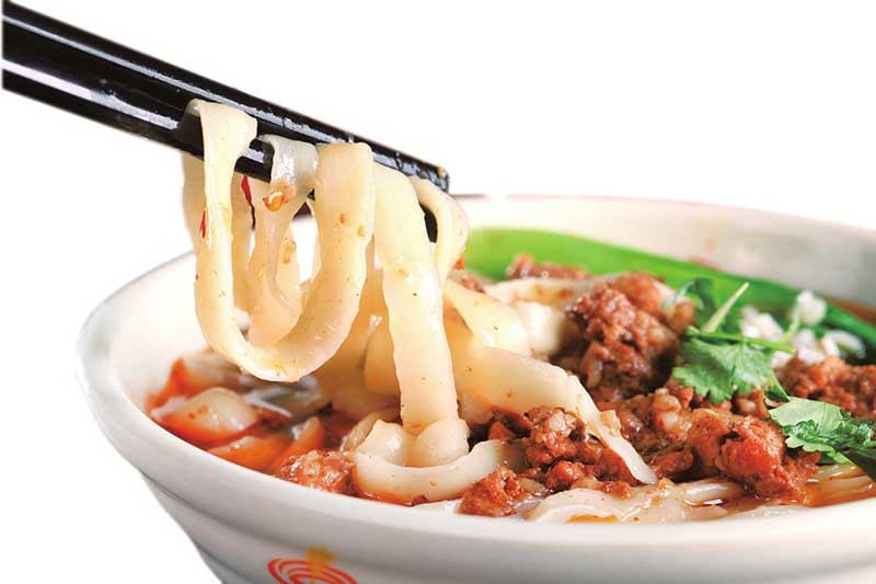 在開(kāi)始削面之前,非常重要的步驟就是和面和醒面。和面的面和水需要按照一定的比例,同時(shí)對(duì)水溫也有一定的要求,冬天要用熱水,夏天要用涼水,春秋要用溫水。和好面之后緊接著就是醒面,需要用濕布蓋住面團(tuán)醒20分鐘左右。如果說(shuō)吃刀削面是飽了口福,那么看刀削面下鍋可稱之為飽了眼福。一只手托著放著面團(tuán)的案板,另一只手拿著削面刀,削面刀又分為片刀和勾刀,削面時(shí),出力要平,用力要均,削出的面條中間厚兩邊薄,一葉連著一葉,在空中劃出一道道弧形白線,落入鍋中的面條好似一條條銀魚(yú),隨著熱水的翻滾不斷舞動(dòng)。有順口溜贊曰:“一葉落鍋一葉飄,一葉離面又出刀,銀魚(yú)落水翻白浪,柳葉乘風(fēng)下樹(shù)梢。”