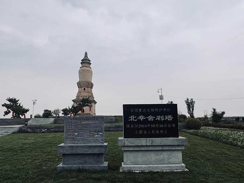北辛舍利塔始建于明洪武十六年(1383年)。塔高21米,一、二層為正方形,三層為圓形覆缽,是元代流行的喇嘛塔與明代出現(xiàn)的金剛寶座塔組合形式的變體。2019年10月16日被國務(wù)院公布為第八批全國重點文物保護單位。舍利塔所處的位置是黃河(汾河)萬榮段最高點,西可俯瞰滔滔黃河汾河灘涂生態(tài)美景;東可眺望大美萬榮兩山一臺,是黃汾岸畔一顆耀眼的明珠。