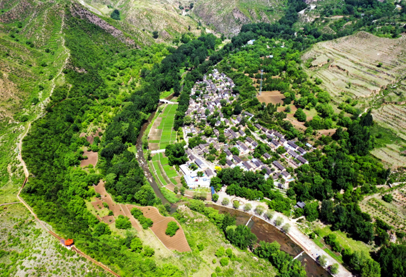 花塔村,因村后山勢如塔、桃花滿山而得名,地處太行山余脈、五臺山北支的丘陵盆地之中,村域面積144平方千米?;ㄋ逅拿姝h(huán)山,大山封閉,一河中流,進入村莊須經(jīng)一條長827米的隧道,隧道內(nèi)陰暗潮濕,出隧道后豁然開朗,土地平曠,屋舍儼然,良田美池,具有清新自然的田園風情。村落生態(tài)環(huán)境保護完整,有著獨特的氣候地貌和人文積淀,被譽為“晉北桃源”。