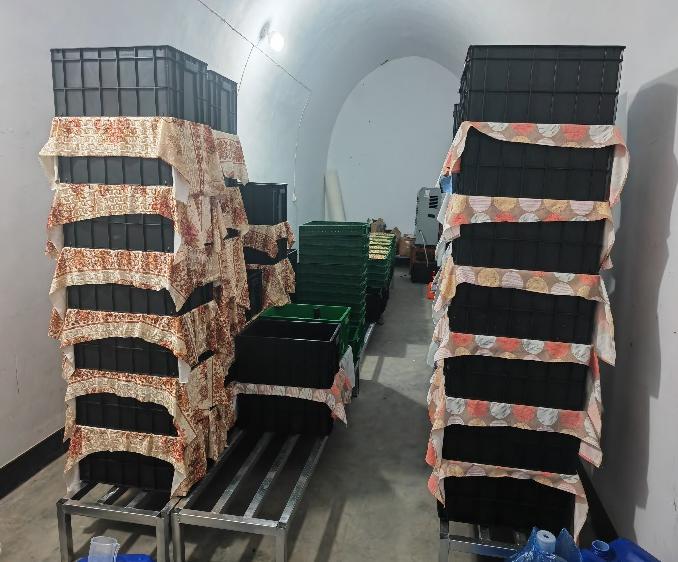 ??正在窯洞中生長的花生芽。(受訪者供圖)