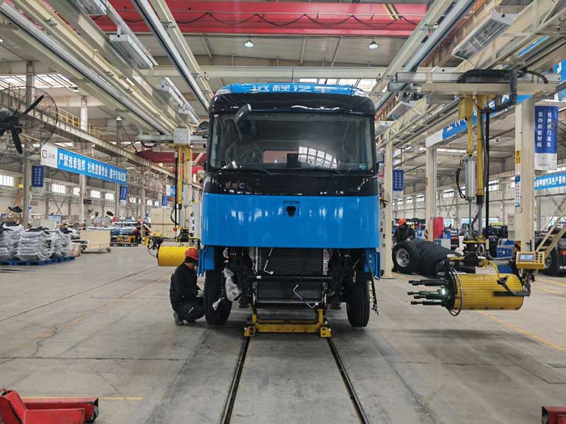 ??在位于山西省晉中市的吉利遠(yuǎn)程新能源商用車集團(tuán)甲醇重卡總裝車間,工人在組裝甲醇重卡。新華社記者 王勁玉 攝