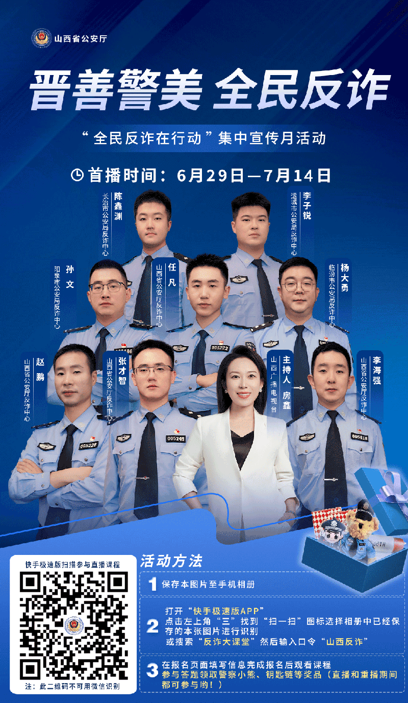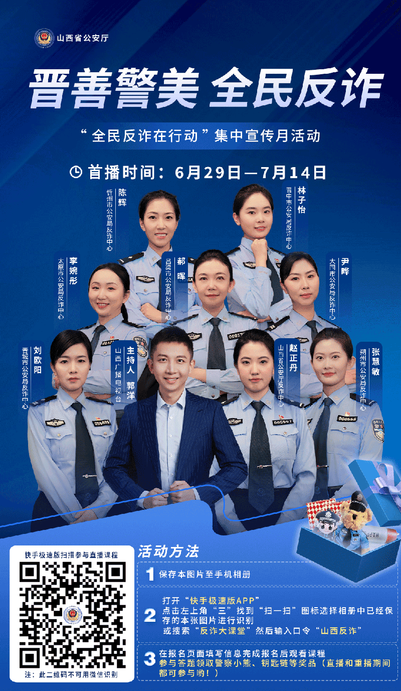 方式二:快手極速版主頁(yè)面點(diǎn)擊右上角,搜索“反詐大課堂”下一頁(yè)面輸入學(xué)習(xí)口令“山西反詐”進(jìn)入直播間學(xué)習(xí)。