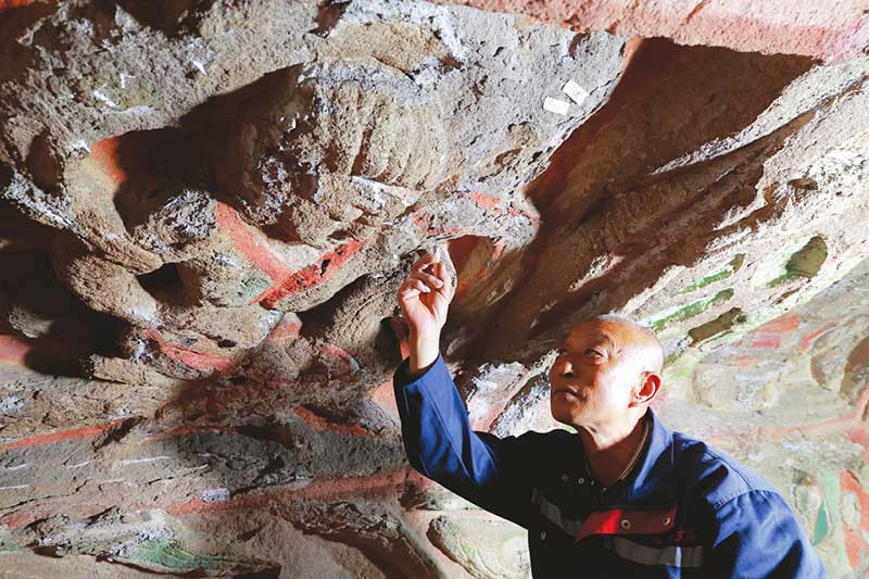 云岡研究院文保修復(fù)人員正在對受損文物進(jìn)行修復(fù)。趙文貴攝