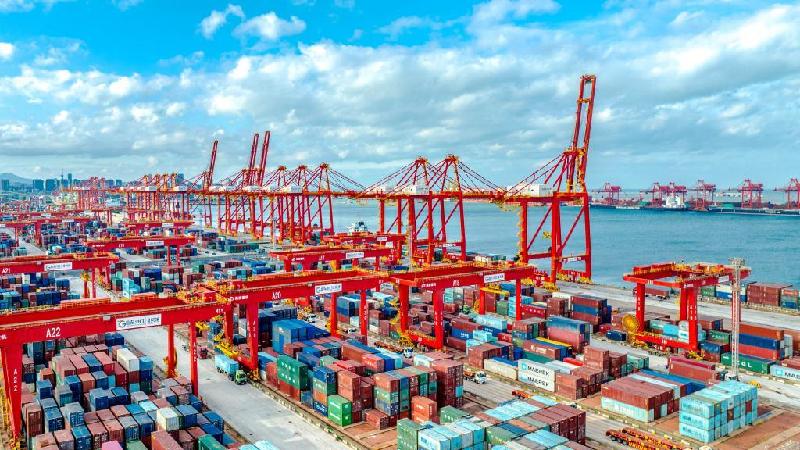 ??這是山東港口日照港的集裝箱碼頭(無人機(jī)照片)。