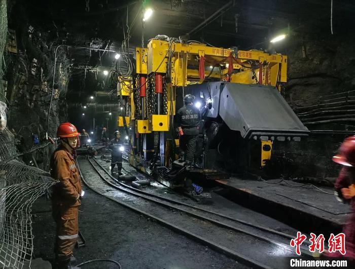礦用液壓框架式起吊裝置在華陽一礦15304拆除工作面投用。張園園 攝