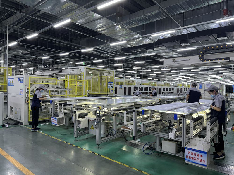 ??7月31日,工人在山西華儲光電有限公司新建的光伏產(chǎn)品制造車間忙碌。新華社記者 王學(xué)濤 攝