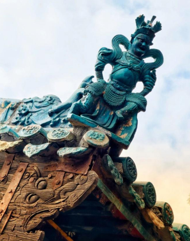 ▲玉皇殿殿頂各種琉璃脊飾,也是國內(nèi)同類琉璃制品中的僅存之物