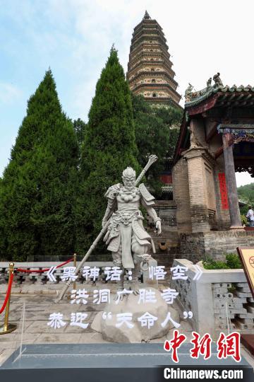 洪洞廣勝寺前矗立著《黑神話:悟空》里的悟空雕像。武俊杰攝