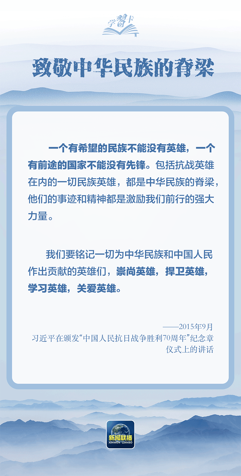 “對(duì)一切為國(guó)家、為民族、為和平付出寶貴生命的人們,不管時(shí)代怎樣變化,我們都要永遠(yuǎn)銘記他們的犧牲和奉獻(xiàn)?!?/p>