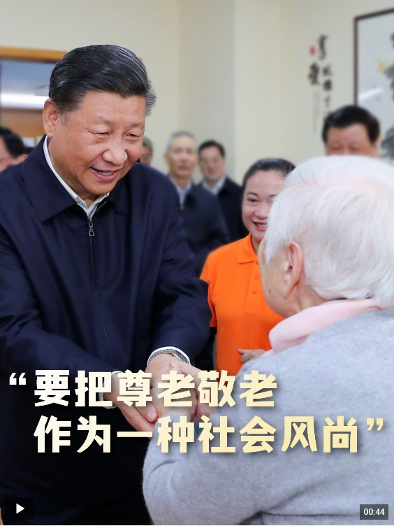 習近平總書記始終關心老年群體、重視老齡事業(yè)。在赴各地考察調研時,習近平走到哪里,就把尊老敬老的風尚帶到哪里。從鄉(xiāng)村到社區(qū),從養(yǎng)老機構到養(yǎng)老服務站……一次次噓寒問暖發(fā)乎于心,一份份關心關愛踐之于行。習近平總書記的身體力行,為全社會作出“尊老敬老”的表率,推動尊老、敬老、愛老、助老蔚然成風。“尊老敬老是中華民族的傳統(tǒng)美德,愛老助老是全社會的共同責任。”“讓所有老年人都能老有所養(yǎng)、老有所依、老有所樂、老有所安?!?/p>