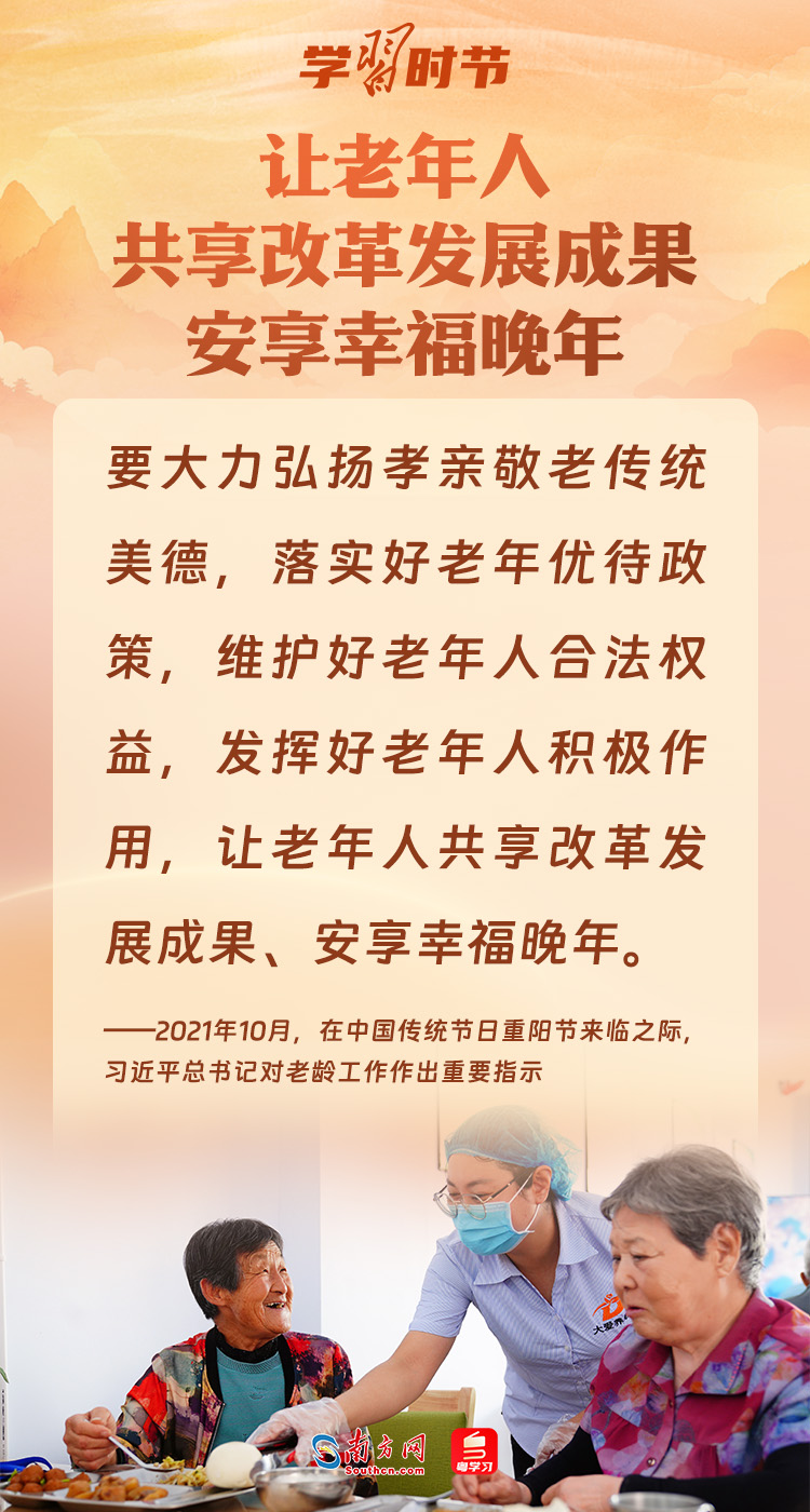 “獨(dú)在異鄉(xiāng)為異客,每逢佳節(jié)倍思親?!鞭r(nóng)歷九月初九為重陽節(jié),也是我國法定“老年節(jié)”。讓所有老年人幸福地安度晚年,是習(xí)近平總書記一直以來的深切牽掛。黨的十八大以來,習(xí)近平總書記作出一系列重要指示,規(guī)劃部署國家老齡事業(yè)發(fā)展和養(yǎng)老服務(wù)體系建設(shè),指出要“讓所有老年人都能有一個(gè)幸福美滿的晚年”。