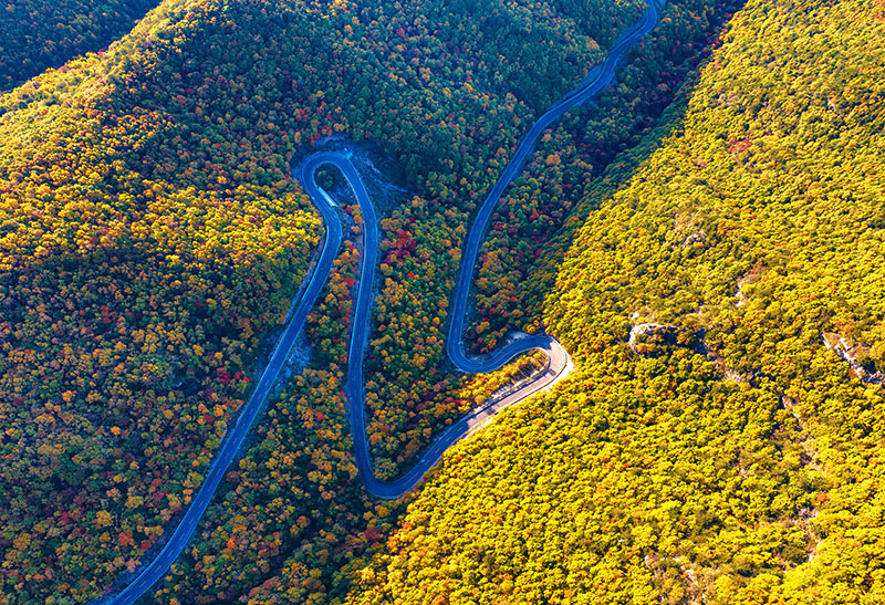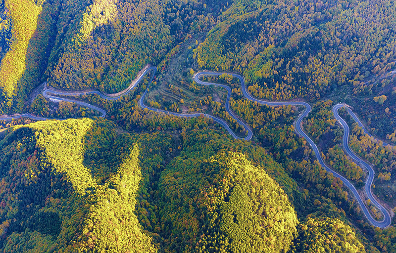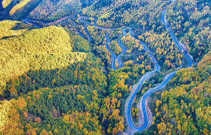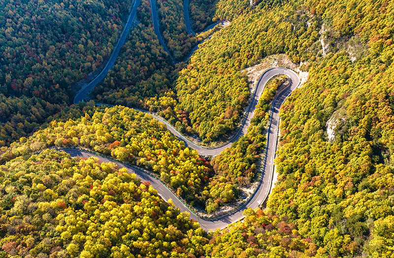 太行一號旅游公路如巨龍般蜿蜒而上,穿梭在五彩斑斕的秋日山景中,為這秋日畫卷添上了靈動與詩意的一筆。金秋的天高云淡,太行山巍峨壯麗,溝壑縱橫,如夢如幻。大自然不經(jīng)意間打翻了調(diào)色盤,灑下一片斑斕,讓太行山換上了華麗的新裝,如詩如畫,盡顯秋韻之美,讓人沉醉其中,流連忘返。