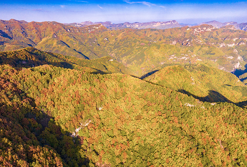 10月11日,山西晉中左權(quán)縣的太行山孟信垴自然保護區(qū)大堡巖披上了金秋的盛裝。萬山紅遍,層林盡染,紅葉如火,黃葉似金,連綿的太行山脈被絢爛的色彩所覆蓋,展現(xiàn)出大自然的無限魅力與蓬勃生機。