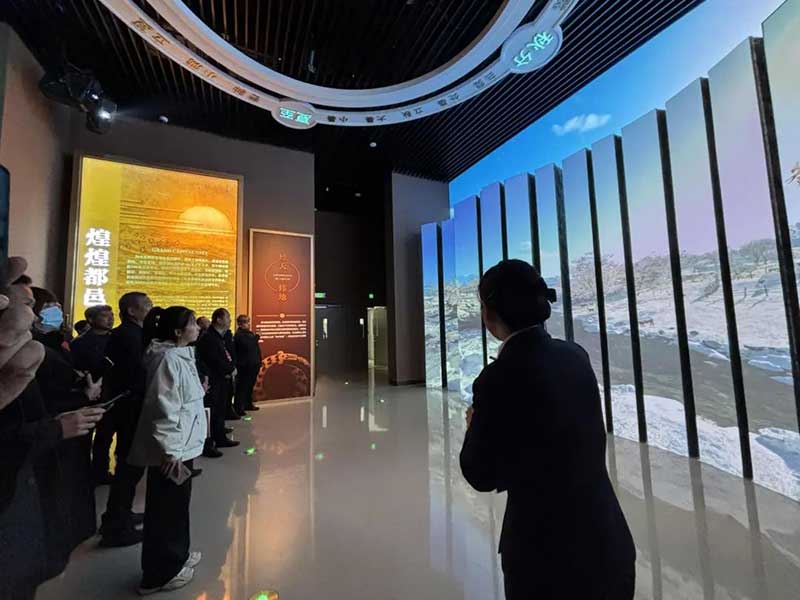 觀眾在陶寺遺址博物館,通過互動裝置感受觀象臺的神奇