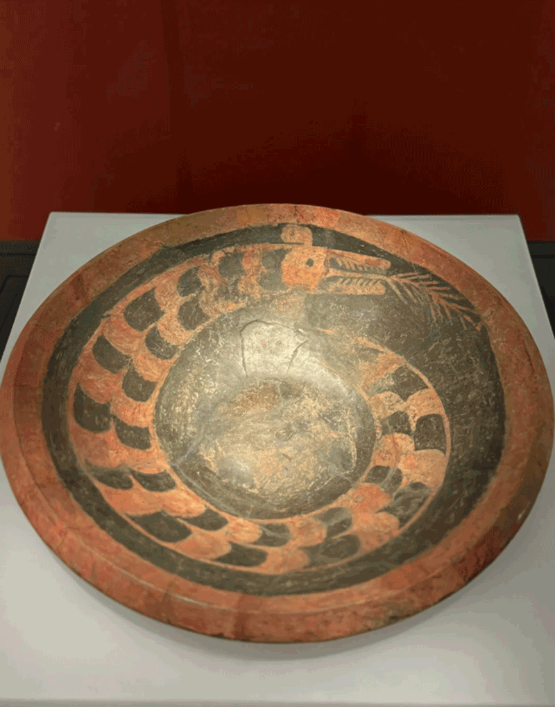 彩繪龍紋陶盤上龍的形象是多種靈獸的組合體,早在陶寺社會(huì)已經(jīng)將龍作為崇拜的圖騰。