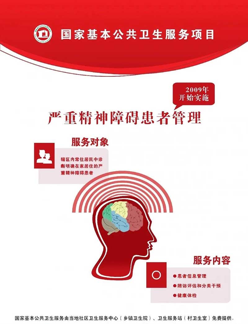 目前,納入國家基本公共衛(wèi)生服務(wù)項目管理和救治救助管理的主要包括六大類精神疾病,分別是精神分裂癥、雙相(情感)障礙、分裂情感性障礙、偏執(zhí)性精神病、癲癇所致精神障礙、精神發(fā)育遲滯伴發(fā)精神障礙。以精神分裂癥最常見。