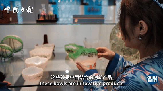 在交談中,李米娜還對(duì)中國水墨畫風(fēng)格的沙拉碗非常著迷,因?yàn)樗宫F(xiàn)了中西合璧的融合創(chuàng)新。