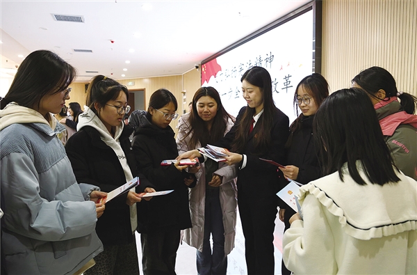 12月4日,市中級人民法院三庭庭長張曉峰為晉中職業(yè)技術學院的學生進行普法宣傳專題講座。他結合多年辦案經驗,通過校園生活中的典型案例,從法的定義、內涵以及違法犯罪的代價出發(fā),全面介紹了相關法律知識。同日,市中級人民法院司法警察支隊走進晉中博雅培文學校,為該校學生普及憲法知識。該校第七黨支部邀請博雅培文學校小學部56名師生走進市中級人民法院,“零距離”了解法院文化、“互動式”感受司法力量、“沉浸式”體驗法治之旅。(張凱鵬)