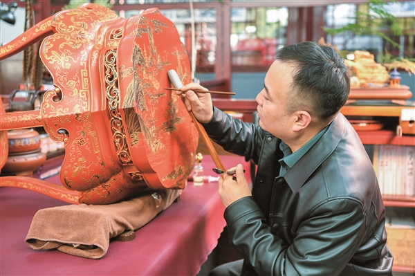 非物質(zhì)文化遺產(chǎn)是文旅發(fā)展的點睛之筆。國家級非物質(zhì)文化遺產(chǎn)平遙推光漆器歷史悠久,是中國四大名漆器之一。其中,平遙縣唐都推光漆器有限公司久負(fù)盛名。12月5日,記者在該公司展覽廳看到,各類推光漆器產(chǎn)品琳瑯滿目?!拔覀兊耐乒馄崞鼢埏椉妓嚾诤蠂鴥?nèi)平磨螺鈿、骨石鑲嵌、剔犀云雕,經(jīng)裱布刮灰、手掌推光等數(shù)十道工序制作而成,手感溫潤?!逼竭b縣唐都推光漆器有限公司負(fù)責(zé)人表示,如今,在文旅產(chǎn)業(yè)的助推下,該企業(yè)已成為集生產(chǎn)銷售、展覽收藏、旅游觀賞于一體的多功能推光漆器文化產(chǎn)業(yè)創(chuàng)意園區(qū),吸引著不少游客。