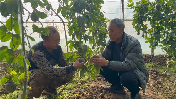 “這兒的百香果前兩天就買過,拿回去孩子們吃了都說好吃,酸甜可口,果子也大。今天放假了,想再來買點兒?!痹谔葏^(qū)小白鄉(xiāng)白燕村的溫室大棚里,一位前來采摘百香果的游客笑著對記者說。時值寒冬,棚內(nèi)卻果香四溢、綠意盎然,一顆顆飽滿的百香果掛滿枝頭,宛如綠色的“寶石”,散發(fā)出誘人的氣息,這番熱鬧的豐收場景,正是太谷區(qū)實施“南果北種”成就的“甜蜜事業(yè)”。