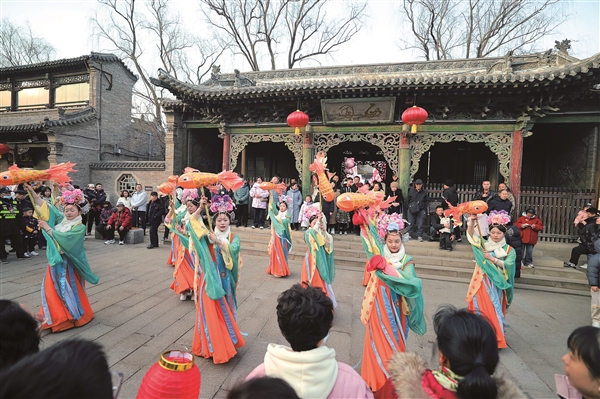 春節(jié)期間,我市各地紛紛亮出絕活,舞獅的雄壯與威猛、舞龍的翻飛與盤旋、踩高蹺的驚險與刺激、劃旱船的歡快與靈動……這些精彩紛呈的晉商民俗活動,如同一幅幅流動的畫卷,在街頭巷尾鋪展開來,將地道中國年的喜慶與熱鬧展現(xiàn)得淋漓盡致。人們賞花燈、逛廟會、游古村大院,沉浸在一片歡聲笑語中,共同品味著那份屬于中國年的獨(dú)特韻味。這些活動不僅烘托出“共歡新故歲,迎送一宵中”的喜慶氣氛,更激蕩起“千門萬戶曈曈日,總把新桃換舊符”的精神氣象,展現(xiàn)了晉中人民的熱情與活力,以及對傳統(tǒng)文化的深厚情感與執(zhí)著堅守。