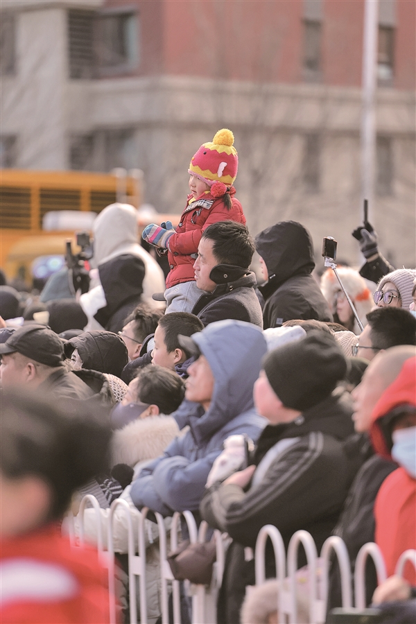 在圍觀群眾中,一個身穿綠色衣服的小男孩特別引人注意。他坐在舅舅的肩頭,連鼓掌帶歡呼。孩子的母親王悅?cè)礁锌卣f:“孩子個頭小,舅舅就把他扛在了肩膀上,這樣能看得更清楚。我們帶著孩子來看社火,就是想讓他感受一下咱們中國的傳統(tǒng)節(jié)日氛圍。你看他,眼睛都看直了,笑得那么開心。這樣的活動,不僅能讓孩子增長見識,還能培養(yǎng)他對傳統(tǒng)文化的興趣。希望以后每年都能帶他來看,讓他一直記得這份歡樂和幸福?!?/p>