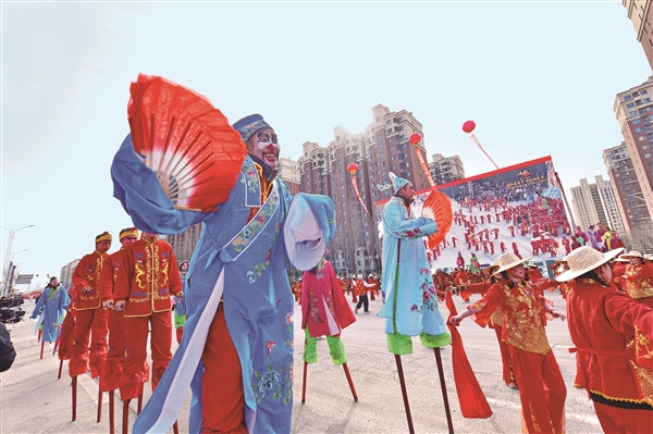 “踩高蹺不僅是一種技藝,更是一種文化?!苯樾菔虚Z冀堡村踩高蹺非遺傳承基地傳承人任建勛說:“它承載著人們對美好生活的期盼和渴望,也體現(xiàn)了閆冀堡村人積極樂觀、奮勇爭先的精神風(fēng)貌?!?/p>