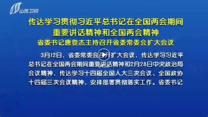 山西日?qǐng)?bào)報(bào)道 3月12日,省委常委會(huì)召開擴(kuò)大會(huì)議,傳達(dá)學(xué)習(xí)習(xí)近平總書記在全國兩會(huì)期間重要講話精神和2月28日中央政治局會(huì)議精神,傳達(dá)學(xué)習(xí)十四屆全國人大三次會(huì)議、全國政協(xié)十四屆三次會(huì)議精神,安排部署貫徹落實(shí)工作。省委書記唐登杰主持會(huì)議。