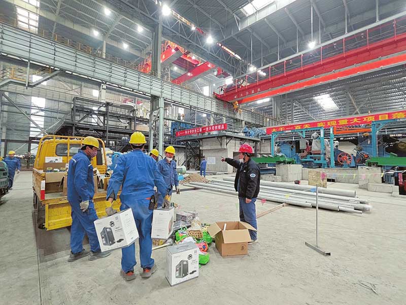 一個個待組裝的設(shè)備整齊排列,一輛輛工程車來回穿梭作業(yè)……走進宏達集團年產(chǎn)100萬噸薄帶鑄軋項目工地,機器轟鳴,焊花飛濺,數(shù)百名工人分布在鋼架“叢林”間進行鑄機、軋機等設(shè)備的安裝,不遠處,“爭分奪秒搶工期,一絲不茍創(chuàng)精品”的橫幅格外醒目。