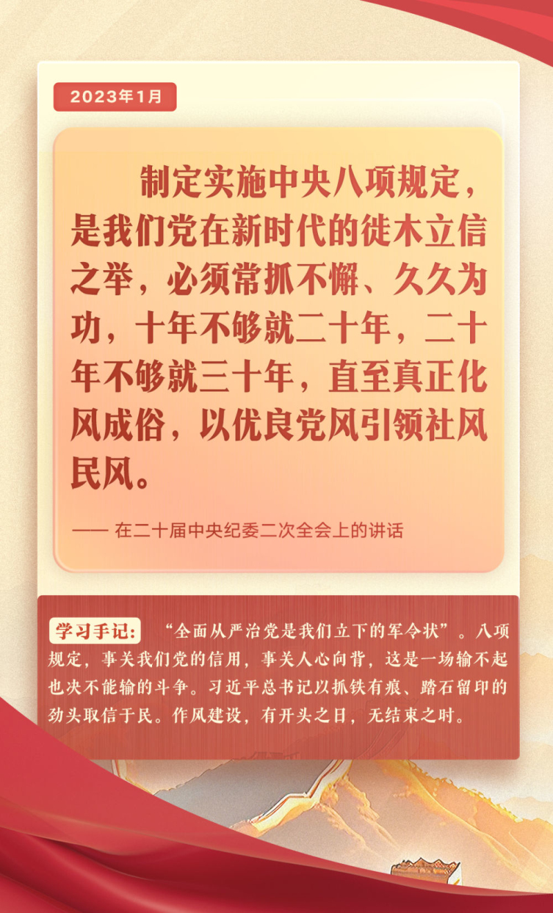 黨的作風(fēng)就是黨的形象。中央八項(xiàng)規(guī)定是改進(jìn)作風(fēng)的切入口和動(dòng)員令,是長期有效的鐵規(guī)矩、硬杠杠。