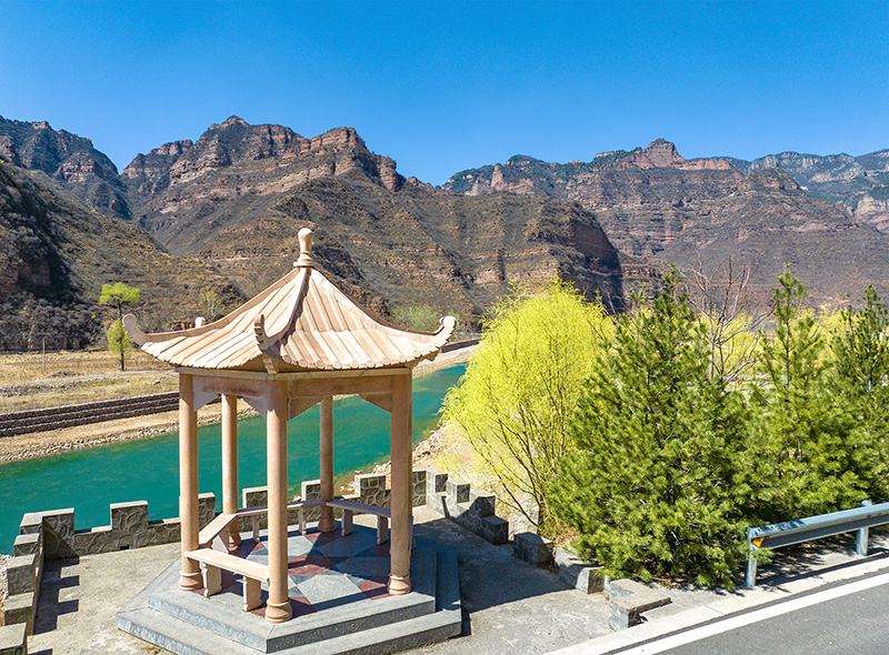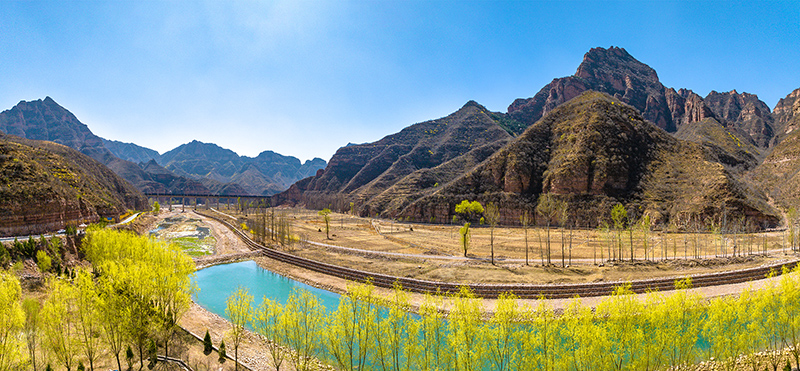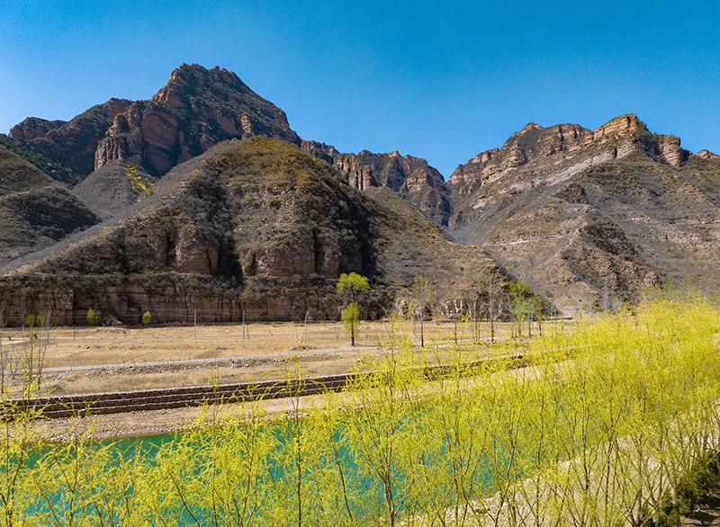 4月1日,四月的左權(quán),桐峪至麻田澤城沿線春色正酣。山桃灼灼似火,連翹鎏金如瀑,新柳含煙若紗,與巍峨太行、瀲滟漳水相映成趣。遠(yuǎn)山如黛描天際,近水微瀾映花光,一幅渾然天成的春日長(zhǎng)卷在太行山間徐徐展開。