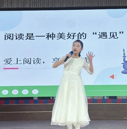 在閱讀分享大會上,孩子們在分享自己的讀書體會。