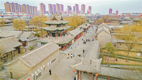 休息過后,來到鳳城——榆次老城。榆次老城位于晉中市城區(qū),是一座擁有1400多年歷史的古城,隋開皇二年(公元582年)在漢城舊址上修筑而起。榆次老城占地100萬平方米,古建筑群和園林建筑面積達60萬平方米。漫步在古城的街道上,看到城隍廟、縣衙、文廟等建筑,進去逛一逛,沉浸式體驗中華傳統(tǒng)文化,感受濃厚的歷史文化氛圍。