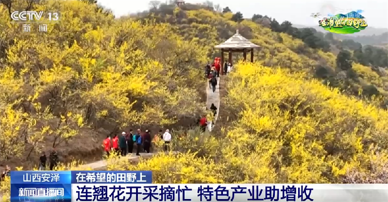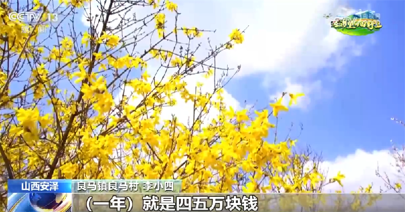 央視網(wǎng)消息:位于山西省安澤縣的150萬畝野生連翹近日迎來盛花期,當(dāng)?shù)剞r(nóng)戶們進(jìn)入采摘連翹葉的春忙時節(jié)。