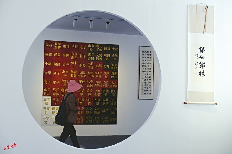 ??展廳中,古籍善本、《般若波羅蜜多心經(jīng)》龍鱗裝卷軸等珍貴展品,在國家圖書館出版社、山西新華書店集團(tuán)太原有限公司、祁縣中學(xué)校等單位及個(gè)人的支持下驚艷亮相。整個(gè)展廳巧妙融合修竹、粉墻、月洞門、楹聯(lián)、書法等傳統(tǒng)書院美學(xué)元素,構(gòu)建出充滿雅致韻味的讀書空間,古樸的書香氛圍撲面而來,令人沉醉。