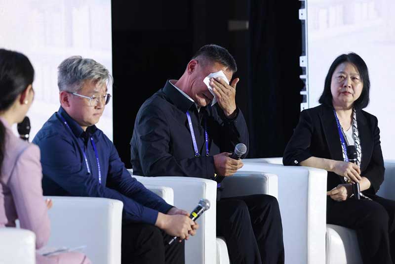 楊靖宇將軍的孫子馬繼民在講述爺爺犧牲時(shí)胃里只有樹皮的往事時(shí)一度哽咽。