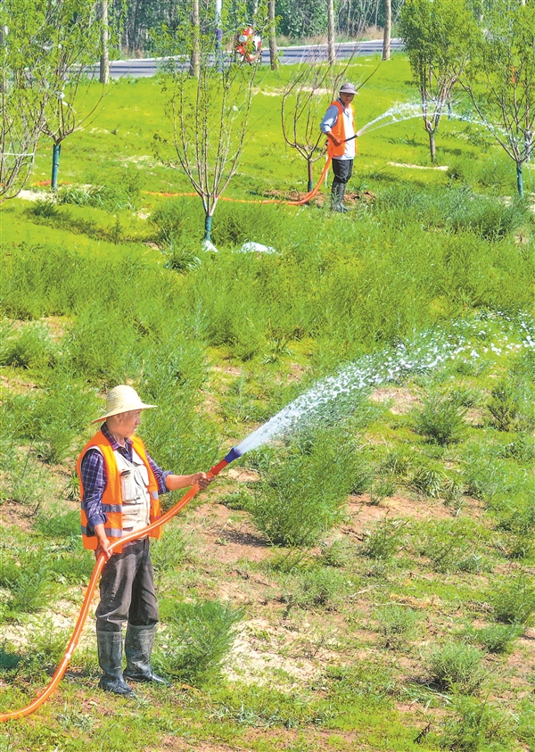 6月6日,工人在汾河平遙段進(jìn)行堤防綠化帶養(yǎng)護(hù)作業(yè)。近年來,平遙縣通過堤防生態(tài)化改造、灘槽整治與景觀綠化,加大區(qū)域內(nèi)汾河生態(tài)綜合治理力度,不斷提升汾河“水豐、岸綠、景美”的生態(tài)價值。