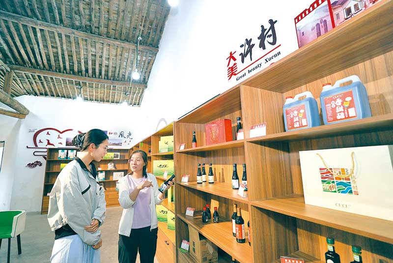 在許村游客接待中心,工作人員正在為游客介紹和順特產(chǎn)。