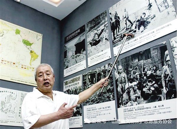 7月5日,記者走進(jìn)退伍老兵王艾甫創(chuàng)辦的遼縣抗日戰(zhàn)爭紀(jì)念館,在侵華罪證廳里,《支那事變畫報(bào)》里的圖片被放大懸掛在展廳墻上,“南京大空爆”“大同城占據(jù)”“血染太原城”,這些清晰的圖片記錄了“七七事變”后日寇在中華大地系統(tǒng)性軍事侵略與屠殺的罪證。