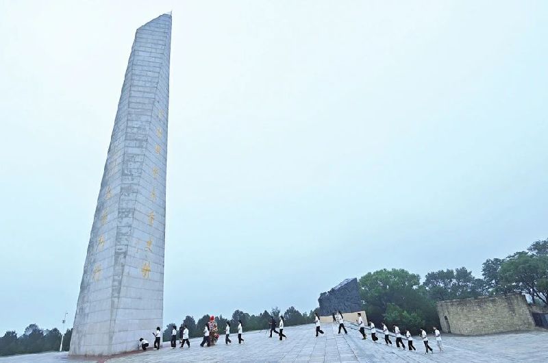 陽泉城區(qū),獅腦山。百團大戰(zhàn)紀(jì)念碑,碑鋒似劍,直刺蒼穹。不遠(yuǎn)處,以“基石”為寓意的百團大戰(zhàn)紀(jì)念館,莊嚴(yán)肅穆,巍然矗立。