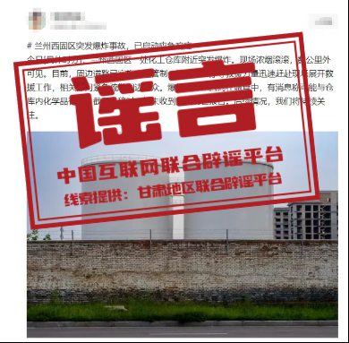 謠 言 甘肅蘭州一化工倉(cāng)庫(kù)附近突發(fā)爆炸?