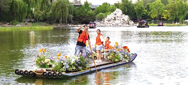 8月10日,市城區(qū)晉商公園碧空如洗,流云倒映湖面,游人輕舟蕩漾,勾勒出一幅生態(tài)宜居幸福城市的美麗畫卷。近年來,我市以綠為筆,實施全域增綠、河道修復等工程,讓市民推窗見綠、出門入園,盡享繁華與自然交織的宜居生活。