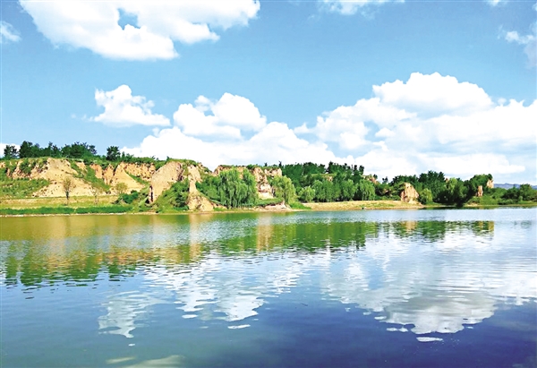 漫步在市城區(qū)晉商公園湖邊,藍天白云倒映在波光粼粼的水面上,兩岸是綠樹、鮮花,一幅“河清、水暢、岸綠、景美”的畫卷。健身步道上,隨處可見散步、慢跑的市民。