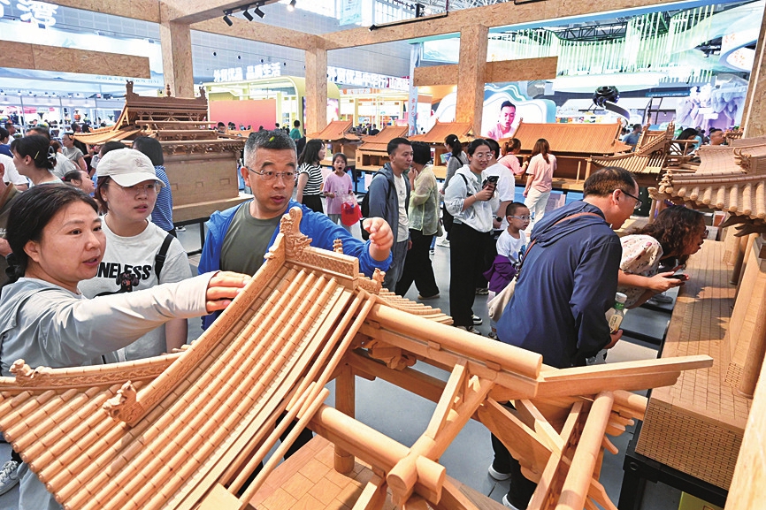晟龍古建模型展區(qū),古色古香的古建模型吸引游客的目光。記者楊晨玉攝