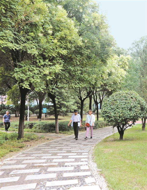 圖為居民在市城區(qū)體育公園漫步休閑。