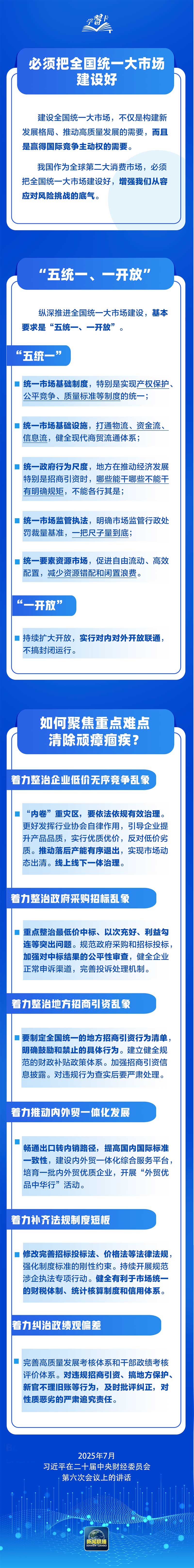 建設全國統(tǒng)一大市場,是黨中央作出的重大決策?;疽笫鞘裁矗咳绾尉劢怪攸c難點、清除頑瘴痼疾?一起學習↓