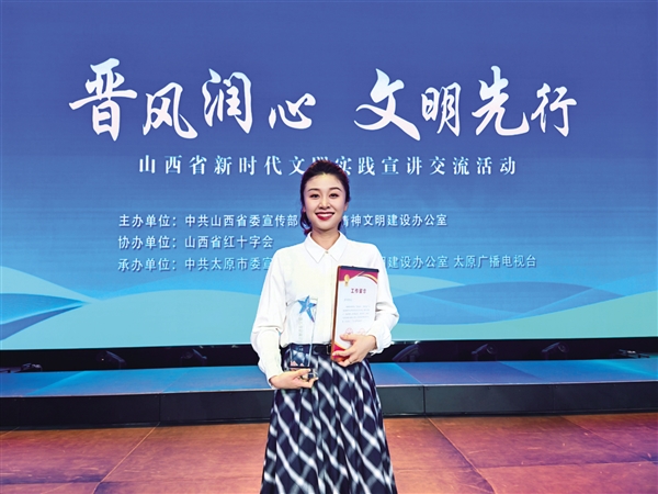在基層宣講中,枯燥的理論傳達并不能走進聽眾的心里,崔雨琦另辟蹊徑,采用更接地氣的創(chuàng)新形式推動移風(fēng)易俗的工作宣傳,她用幽默風(fēng)趣的語言、生動形象的表演,將原本嚴肅的主題變得妙趣橫生。在左權(quán)縣中青年干部培訓(xùn)班的課堂中,她采用“理論+故事”的模式,情景模擬了很多身邊人、身邊事,在歡聲笑語中,讓大家深刻認識到優(yōu)質(zhì)均衡教育對于鄉(xiāng)村振興的戰(zhàn)略支點作用。在省文明辦舉行的“晉風(fēng)潤心 文明先行”交流活動中,她采用脫口秀的新穎宣講形式獲得了“潛力奮進宣講員”這一稱號,為宣講工作創(chuàng)新發(fā)展開辟了新賽道。?