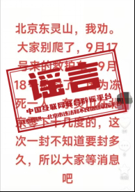 謠 言 有人在山頂凍死致北京東靈山“封山”?